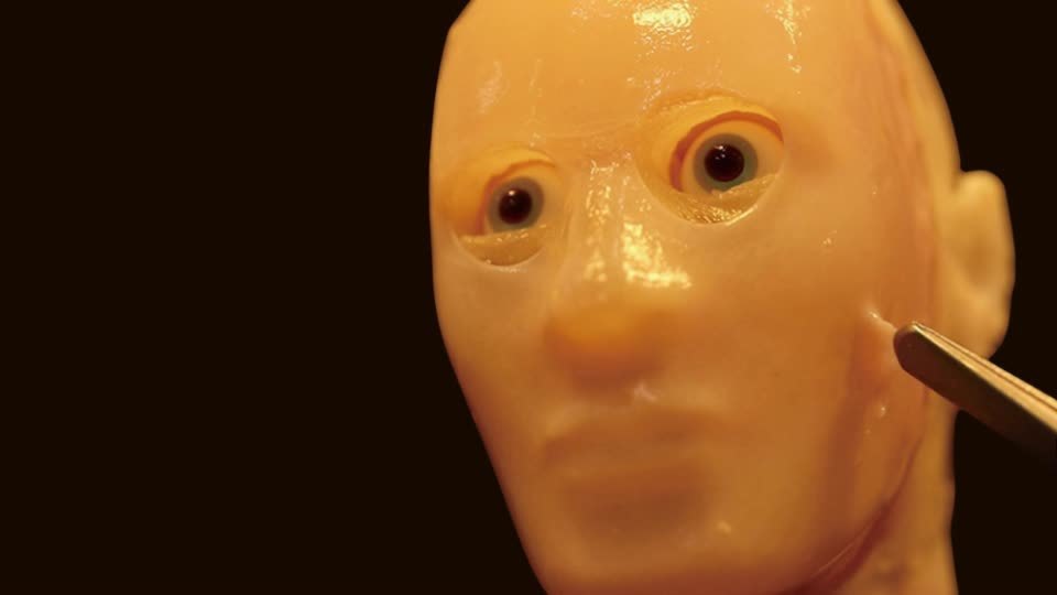 于是,微笑机器人就有了一张紧致有弹性、逼真、可以做表情的一张脸。