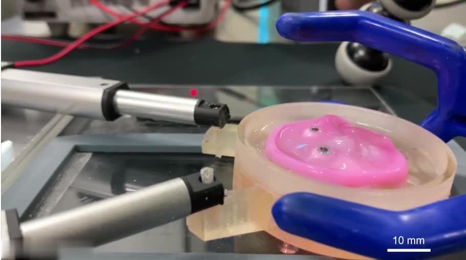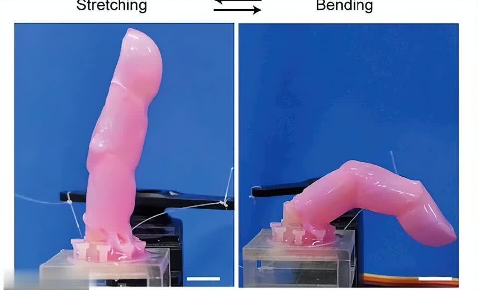 根据竹内教授的描述,他们研究这个,是希望有一天能取代机器人的硅胶皮肤,为以后制造出更逼真的机器人奠定基础。