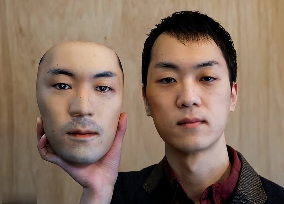 日本科学家打造了图片里的这个机器人笑脸,眼睛直勾勾盯着摄像头,然后露出一个带有酒窝的笑容。